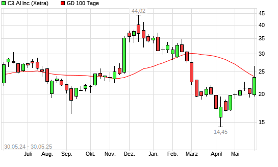 Mit dem Anstieg auf 25,40 EUR hat die C3.ai-Aktie am 29.05.2025 die 100-Tage-Linie nach oben gekreuzt.