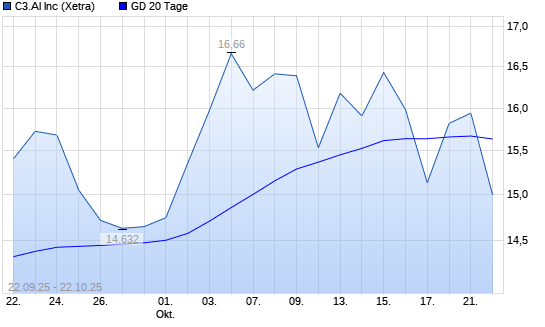 Mit dem Anstieg auf 15,77 EUR hat die C3.ai-Aktie am 21.10.2025 die 20-Tage-Linie nach oben gekreuzt.