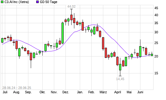 Mit dem Anstieg auf 20,87 EUR hat die C3.ai-Aktie am 27.06.2025 die 50-Tage-Linie nach oben gekreuzt.