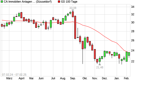 Mit dem Anstieg auf 23,64 EUR hat die CA Immobilien Anlagen-Aktie am 06.02.2025 die 100-Tage-Linie nach oben gekreuzt.