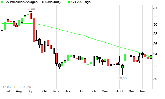 Mit dem Anstieg auf 23,66 EUR hat die CA Immobilien Anlagen-Aktie am 16.06.2025 die 200-Tage-Linie nach oben gekreuzt.