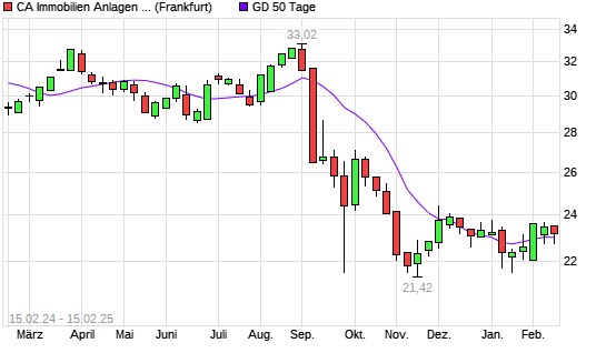 Mit dem Anstieg auf 23,16 EUR hat die CA Immobilien Anlagen-Aktie am 14.02.2025 die 50-Tage-Linie nach oben gekreuzt.