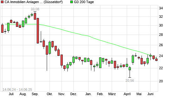 Mit dem Rücksetzer auf 23,28 EUR hat die CA Immobilien Anlagen-Aktie am 13.06.2025 die 200-Tage-Linie nach unten gekreuzt.