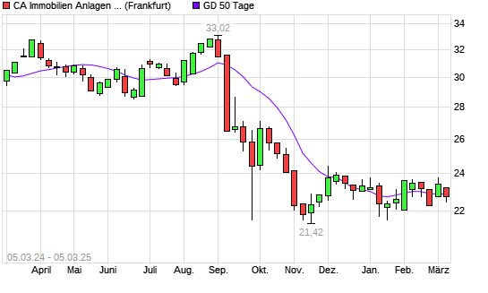 Mit dem Rücksetzer auf 22,46 EUR hat die CA Immobilien Anlagen-Aktie am 04.03.2025 die 50-Tage-Linie nach unten gekreuzt.