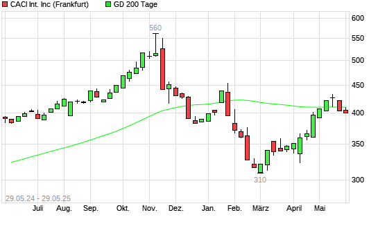 Mit dem Anstieg auf 409,40 EUR hat die CACI International-Aktie am 28.05.2025 die 200-Tage-Linie nach oben gekreuzt.