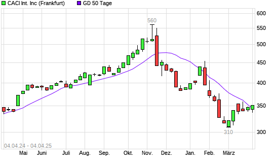 Mit dem Anstieg auf 346,80 EUR hat die CACI International-Aktie am 03.04.2025 die 50-Tage-Linie nach oben gekreuzt.