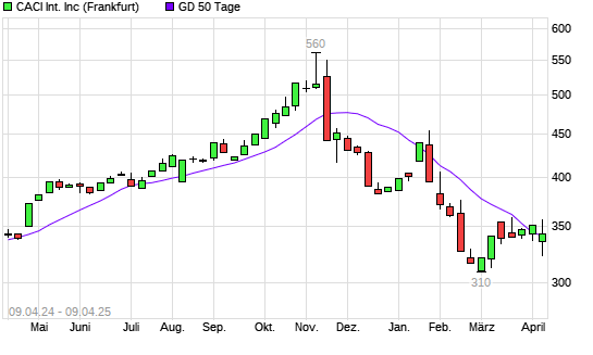Mit dem Anstieg auf 356,00 EUR hat die CACI International-Aktie am 08.04.2025 die 50-Tage-Linie nach oben gekreuzt.