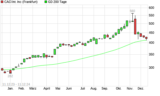 Die CACI International-Aktie befand sich seit dem 11.01.2024 im langfristigen Abwärtstrend und hat in diesem Zeitraum +39,56% an Wert gewonnen.