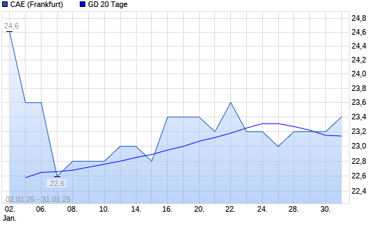 Mit dem Anstieg auf 23,20 EUR hat die CAE-Aktie am 30.01.2025 die 20-Tage-Linie nach oben gekreuzt.