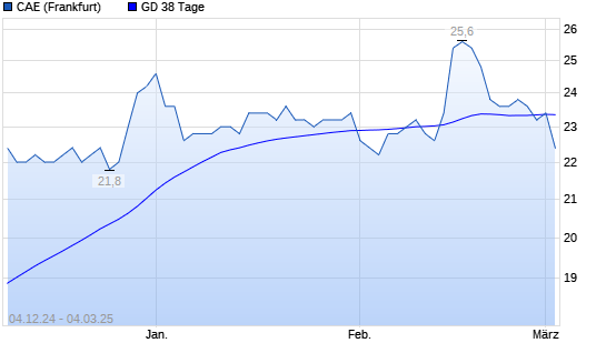 Mit dem Anstieg auf 23,40 EUR hat die CAE-Aktie am 03.03.2025 die 38-Tage-Linie nach oben gekreuzt.