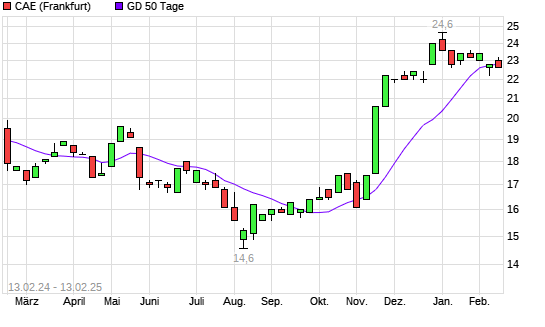 Mit dem Rücksetzer auf 22,80 EUR hat die CAE-Aktie am 12.02.2025 die 50-Tage-Linie nach unten gekreuzt.