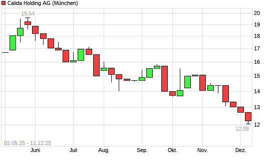 Mit dem Rücksetzer auf 11,80 EUR hat die CALIDA Holding NA-Aktie (ISIN CH0126639464) am 10.12.2025 ein neues 10-Jahres-Tief erreicht und damit den Kurs vom 09.12.2025 eingestellt.