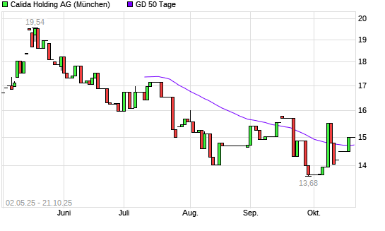 Mit dem Anstieg auf 14,62 EUR hat die CALIDA Holding NA-Aktie am 20.10.2025 die 50-Tage-Linie nach oben gekreuzt.