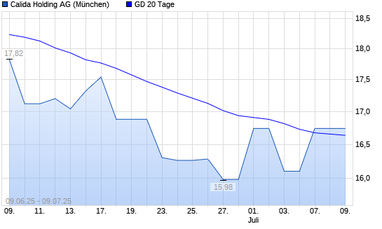 Mit dem Rücksetzer auf 16,12 EUR hat die CALIDA Holding NA-Aktie am 08.07.2025 die 20-Tage-Linie nach unten gekreuzt.