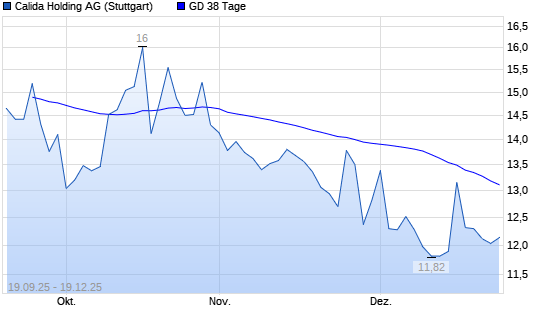Mit dem Rücksetzer auf 11,76 EUR hat die CALIDA Holding NA-Aktie am 18.12.2025 die 38-Tage-Linie nach unten gekreuzt.