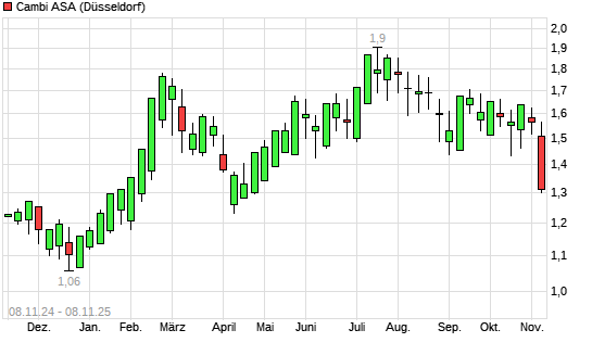 Mit dem Rücksetzer auf 1,31 EUR hat die CAMBI ASA-Aktie (ISIN NO0010078850) am 07.11.2025 ein neues 6-Monats-Tief erreicht und damit den Kurs vom 06.11.2025 eingestellt.