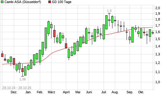 Mit dem Anstieg auf 1,70 EUR hat die CAMBI ASA-Aktie am 27.10.2025 die 100-Tage-Linie nach oben gekreuzt.