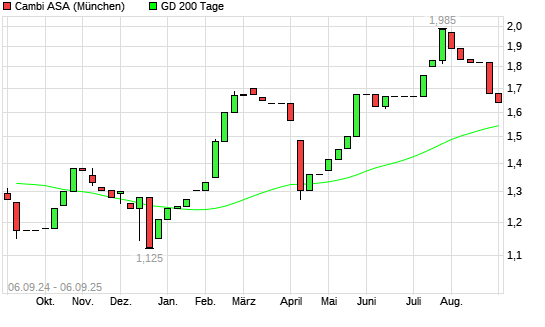 Mit dem Rücksetzer auf 1,44 EUR hat die CAMBI ASA-Aktie am 05.09.2025 die 200-Tage-Linie nach unten gekreuzt.