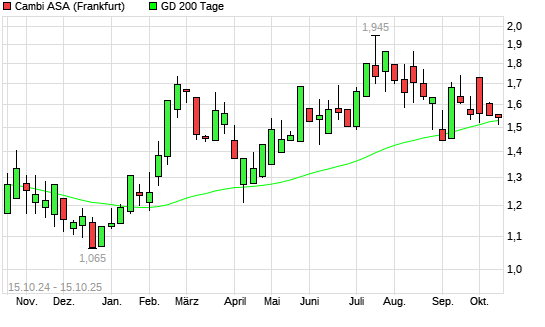 Mit dem Rücksetzer auf 1,52 EUR hat die CAMBI ASA-Aktie am 14.10.2025 die 200-Tage-Linie nach unten gekreuzt.