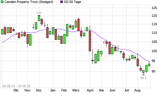 Mit dem Anstieg auf 95,50 EUR hat die CAMDEN PROPERTY TRUST-Aktie am 29.08.2025 die 50-Tage-Linie nach oben gekreuzt.