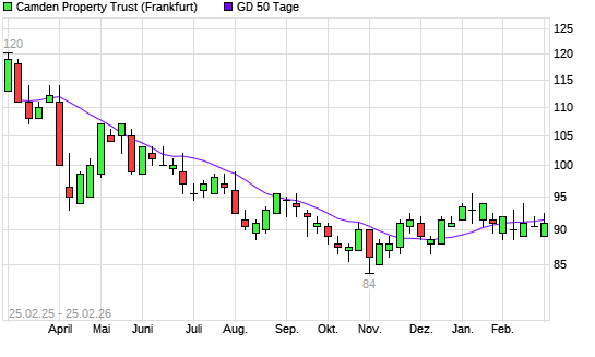 Mit dem Anstieg auf 92,00 EUR hat die CAMDEN PROPERTY TRUST-Aktie am 24.02.2026 die 50-Tage-Linie nach oben gekreuzt.