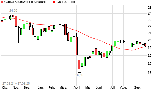 Mit dem Anstieg auf 19,20 EUR hat die CAPITAL SOUTHWEST CORPORATION-Aktie am 26.09.2025 die 100-Tage-Linie nach oben gekreuzt.