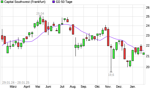 Mit dem Rücksetzer auf 21,14 EUR hat die CAPITAL SOUTHWEST CORPORATION-Aktie am 27.01.2025 die 50-Tage-Linie nach unten gekreuzt.