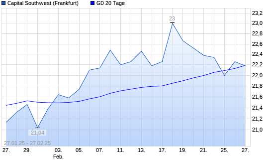 Mit dem Anstieg auf 22,26 EUR hat die CAPITAL SOUTHWEST CORPORATION-Aktie am 26.02.2025 die 20-Tage-Linie nach oben gekreuzt.Die CAPITAL SOUTHWEST CORPORATION-Aktie befindet sich seit dem 20.02.2025 ...weiterlesen