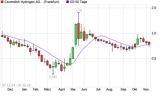 Mit dem Anstieg auf 0,74 EUR hat die CAVENDISH HYDROGEN-Aktie am 06.11.2025 die 50-Tage-Linie nach oben gekreuzt.
