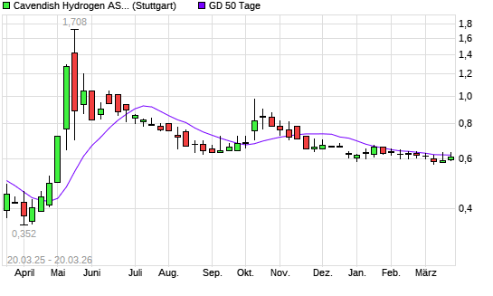 Mit dem Anstieg auf 0,63 EUR hat die CAVENDISH HYDROGEN-Aktie am 19.03.2026 die 50-Tage-Linie nach oben gekreuzt.