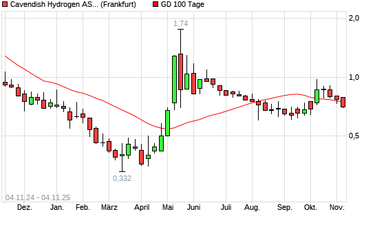 Mit dem Rücksetzer auf 0,75 EUR hat die CAVENDISH HYDROGEN-Aktie am 03.11.2025 die 100-Tage-Linie nach unten gekreuzt.