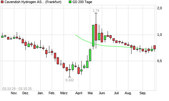 Mit dem Rücksetzer auf 0,66 EUR hat die CAVENDISH HYDROGEN-Aktie am 02.10.2025 die 200-Tage-Linie nach unten gekreuzt.