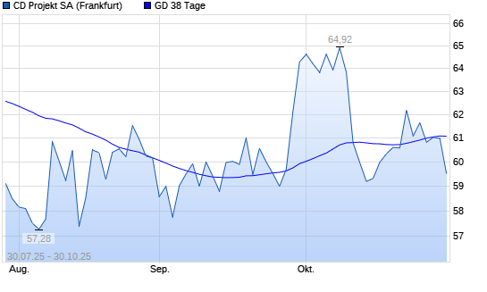 Mit dem Rücksetzer auf 60,50 EUR hat die CD Projekt-Aktie am 29.10.2025 die 38-Tage-Linie nach unten gekreuzt.