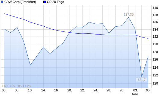 Mit dem Rücksetzer auf 121,70 EUR hat die CDW Corporation-Aktie am 04.11.2025 die 20-Tage-Linie nach unten gekreuzt.