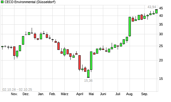 Mit dem Anstieg auf 43,82 EUR hat die CECO Environmental-Aktie (ISIN US1251411013) am 01.10.2025 ein neues All-Time-High erreicht und damit den Kurs vom 19.09.2025 eingestellt.