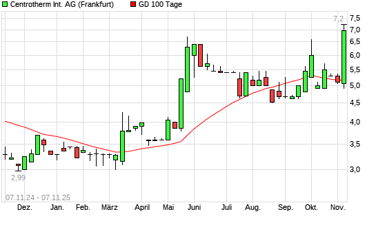 Mit dem Anstieg auf 6,65 EUR hat die CENTROTHERM PHOTOV.KONV.-Aktie am 06.11.2025 die 100-Tage-Linie nach oben gekreuzt.