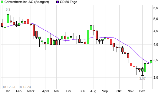 Mit dem Anstieg auf 3,42 EUR hat die CENTROTHERM PHOTOV.KONV.-Aktie am 17.12.2024 die 50-Tage-Linie nach oben gekreuzt.