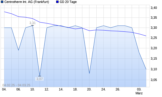 Mit dem Rücksetzer auf 3,18 EUR hat die CENTROTHERM PHOTOV.KONV.-Aktie am 03.03.2025 die 20-Tage-Linie nach unten gekreuzt.