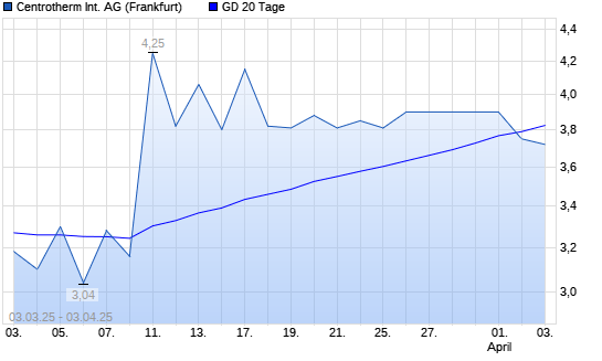 Mit dem Rücksetzer auf 3,75 EUR hat die CENTROTHERM PHOTOV.KONV.-Aktie am 02.04.2025 die 20-Tage-Linie nach unten gekreuzt.