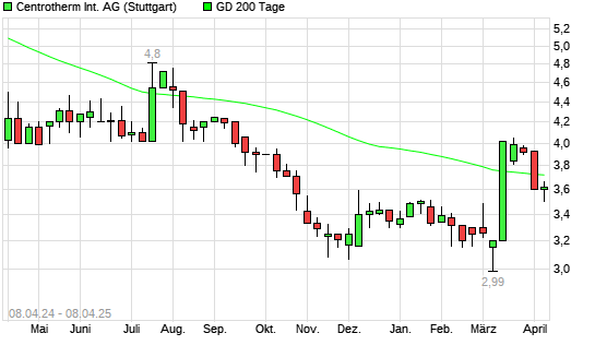 Mit dem Rücksetzer auf 3,60 EUR hat die CENTROTHERM PHOTOV.KONV.-Aktie am 07.04.2025 die 200-Tage-Linie nach unten gekreuzt.