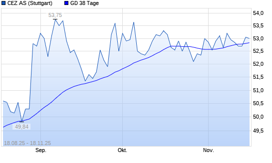 Mit dem Rücksetzer auf 53,05 EUR hat die CEZ-Aktie am 17.11.2025 die 38-Tage-Linie nach unten gekreuzt.