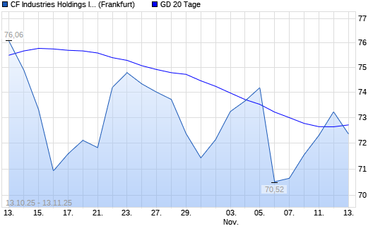 Mit dem Anstieg auf 73,23 EUR hat die CF Industries Holdings-Aktie am 12.11.2025 die 20-Tage-Linie nach oben gekreuzt.
