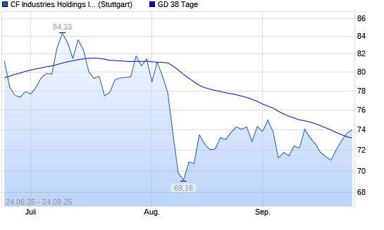 Mit dem Anstieg auf 73,51 EUR hat die CF Industries Holdings-Aktie am 23.09.2025 die 38-Tage-Linie nach oben gekreuzt.