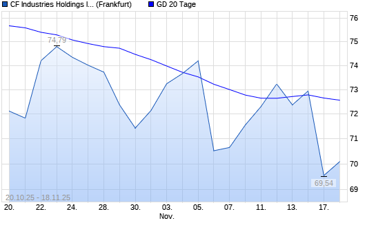 Mit dem Rücksetzer auf 69,54 EUR hat die CF Industries Holdings-Aktie am 17.11.2025 die 20-Tage-Linie nach unten gekreuzt.