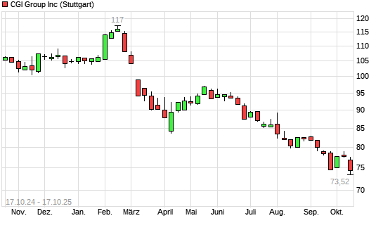 Mit dem Rücksetzer auf 74,46 EUR hat die CGI Group-Aktie (ISIN CA12532H1047) am 16.10.2025 ein neues 3-Jahres-Tief erreicht und damit den Kurs vom 29.09.2025 eingestellt.