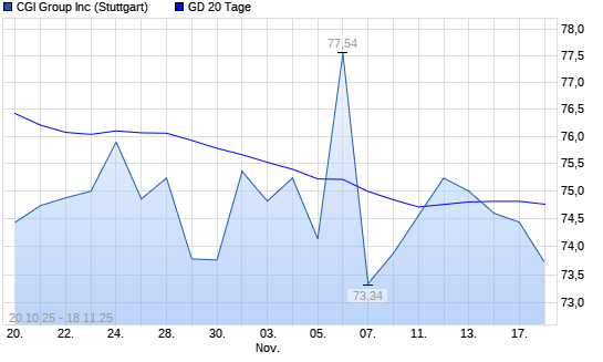 Mit dem Rücksetzer auf 74,80 EUR hat die CGI Group-Aktie am 17.11.2025 die 20-Tage-Linie nach unten gekreuzt.