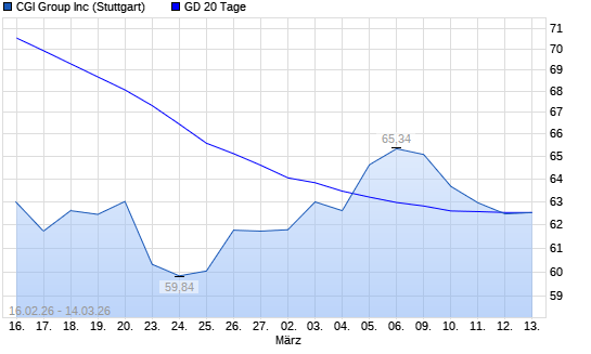 Mit dem Rücksetzer auf 62,52 EUR hat die CGI Group-Aktie am 13.03.2026 die 20-Tage-Linie nach unten gekreuzt.