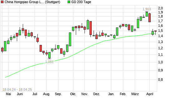 Mit dem Anstieg auf 1,58 EUR hat die CHINA HONGQIAO GROUP-Aktie am 17.04.2025 die 200-Tage-Linie nach oben gekreuzt.