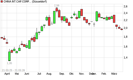 Mit dem Rücksetzer auf 1,97 EUR hat die CHINA INT.CAP.H YC 1-Aktie (ISIN CNE100002359) am 20.03.2026 ein neues 6-Monats-Tief erreicht und damit den Kurs vom 19.03.2026 eingestellt.