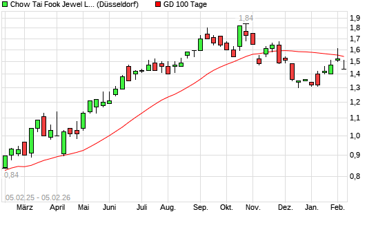 Mit dem Anstieg auf 1,51 EUR hat die CHOW TAI FOOK JEWEL.-Aktie am 04.02.2026 die 100-Tage-Linie nach oben gekreuzt.